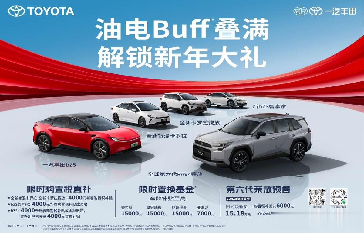 值得一提的是,2026年1月1日-1月9日,一汽丰田再推“解锁新年大礼”,回馈新老用户长久厚爱。