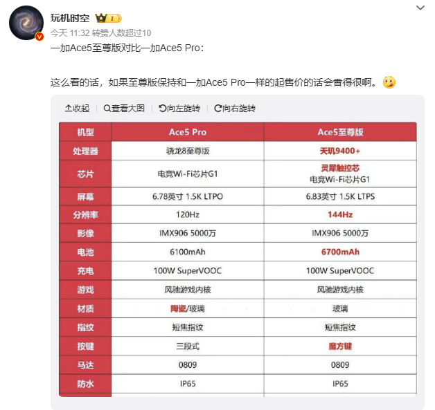 值得一提的是,一加老总李杰 Louis 曾回复网友,一加 Ace 5 至尊版的价格会非常有吸引力。不少网友猜测其售价在 2K 到 3K 区间,要真像网友猜测那样,结合该机型的超强配置,性价比就好十分突出。真的有点 5 月 27 日一加 Ace 5 至尊版的亮相,好奇它的定价到底有多香。# 一加 #一加Ace5至尊版