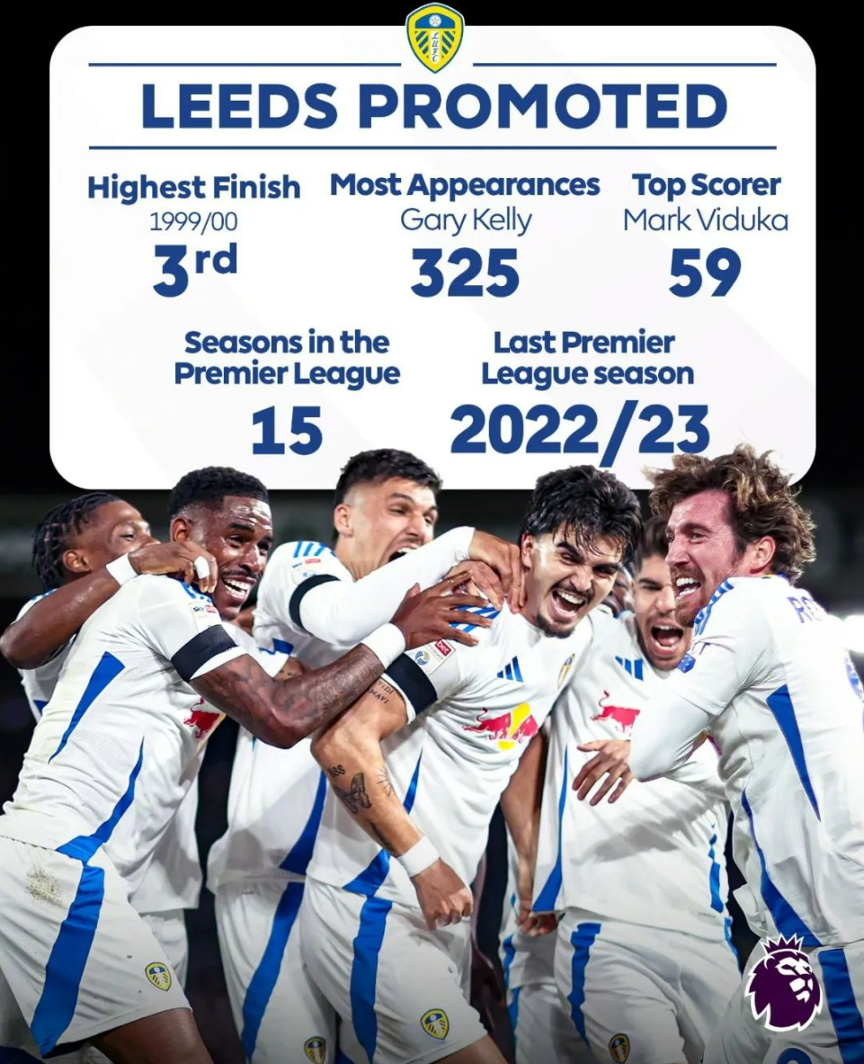 4月22日凌晨,英冠联赛进行了第44轮比赛,利兹联6-0横扫斯托克城、伯恩利2-1力克谢菲联,基于积分榜前两名,所以利兹联和伯恩利 获得下赛季直升英超的资格。