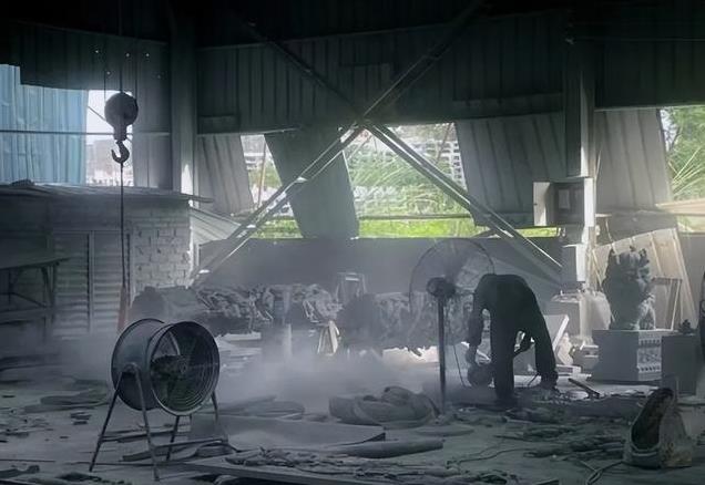 因为材料性质特殊,车间里面是尘灰飞扬,一眼望去,空气中布满了各种可吸入的颗粒。