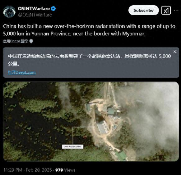依据西方卫星的情报揭示,中国在西南边境地区兴建了一座巨型雷达设施。