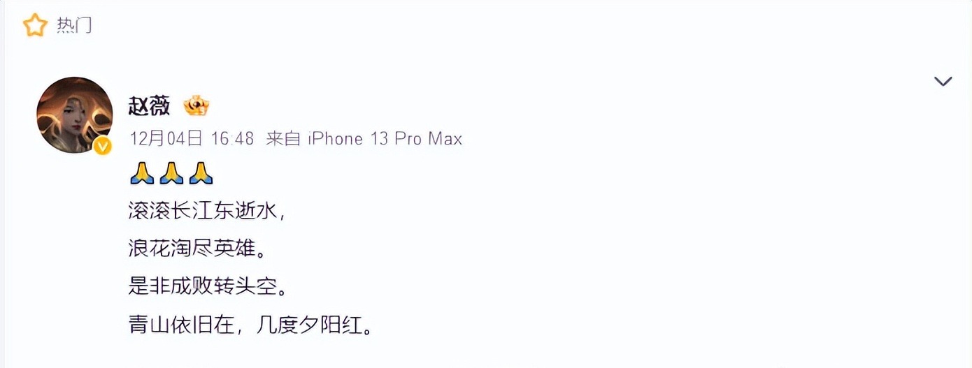 虽然文中没有提及琼瑶的名字,但字里行间都表达了对琼瑶的感激之情。网友们解读出赵薇的隐晦表达,认为她是怕自己的发声会给琼瑶带来负面影响,所以才选择这种方式表达哀思。