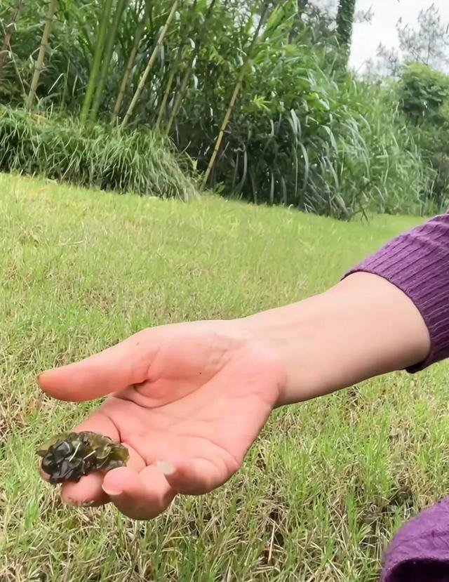 只见在何赛飞拍摄的视频中,地衣的外表看起来像是绿色的木耳,只不过是站在地上而不是木头木头上,摘下来之后又很像海带,这是一个长相奇特的野菜。