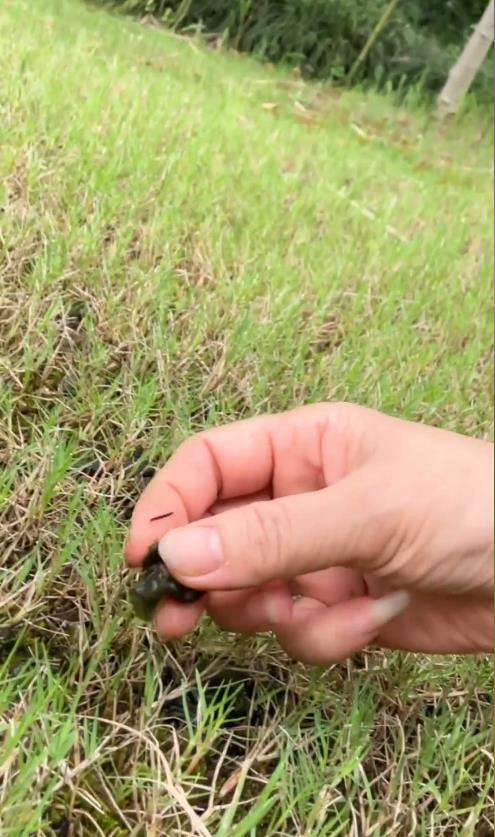 而仔细从何赛飞所处的背景看,发现她所处的山头有松树、竹子、还有观赏类植物,特别是地上的这绿葱葱的草坪,一看就是平时经常有人管理,根本不想是荒山。