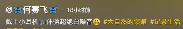 7月1日晚,何赛飞在个人账号分享了一段日常生活,并配文道:“戴上小耳机,体验超绝白噪音。”