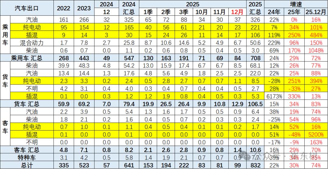这些信号放在一起看,2026年的出口市场不会是简单的“量”的增长。去年全年出口832万辆,今年1月又飙了44.9%,但真正重要的不是这个数字能冲到多少,而是结构能调成什么样。