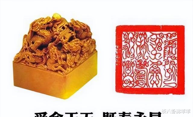 那个就是以前用和氏璧做出来的传国玉玺,玉玺表面刻着“老天让咱当王,长命百岁又昌盛”这八个篆体字,是秦朝时候的宰相李斯亲手写的。