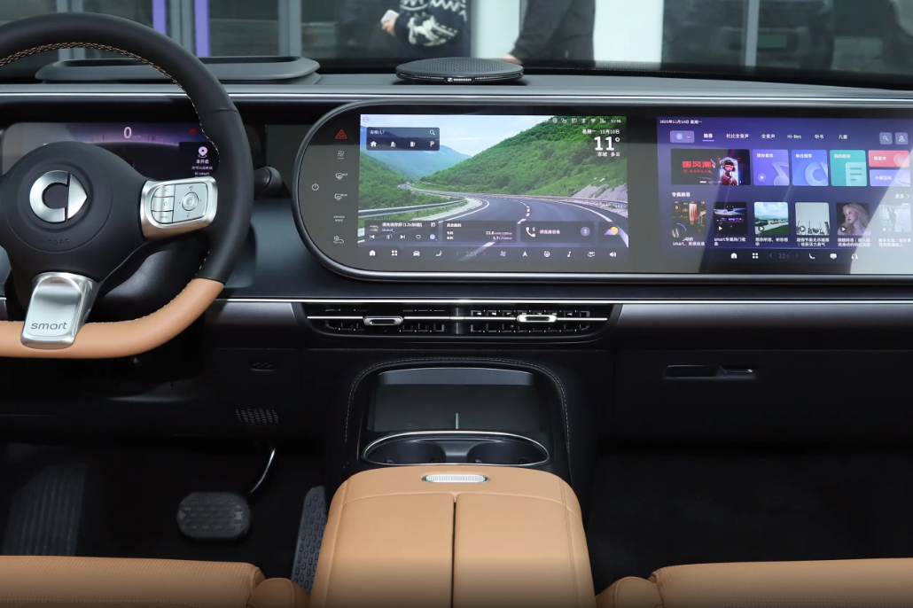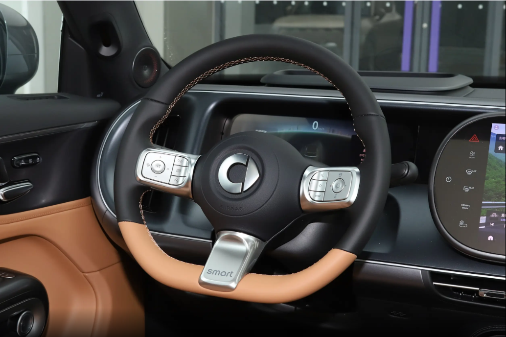 smart精灵#5 EHD超级电混的内饰,坐进去第一感觉就是舒服又有科技感!环抱式座舱把人稳稳裹住,不管是主驾还是副驾,都能感受到满满的包裹感,开车、坐车都不憋屈。三辐式多功能方向盘握感超顺手,常用的调节功能都在上面,不用低头找按键,开车时操作特方便。还有怀挡式换挡机构,省出不少中控空间,看着整洁又高级,上手也简单,新手也能快速适应。