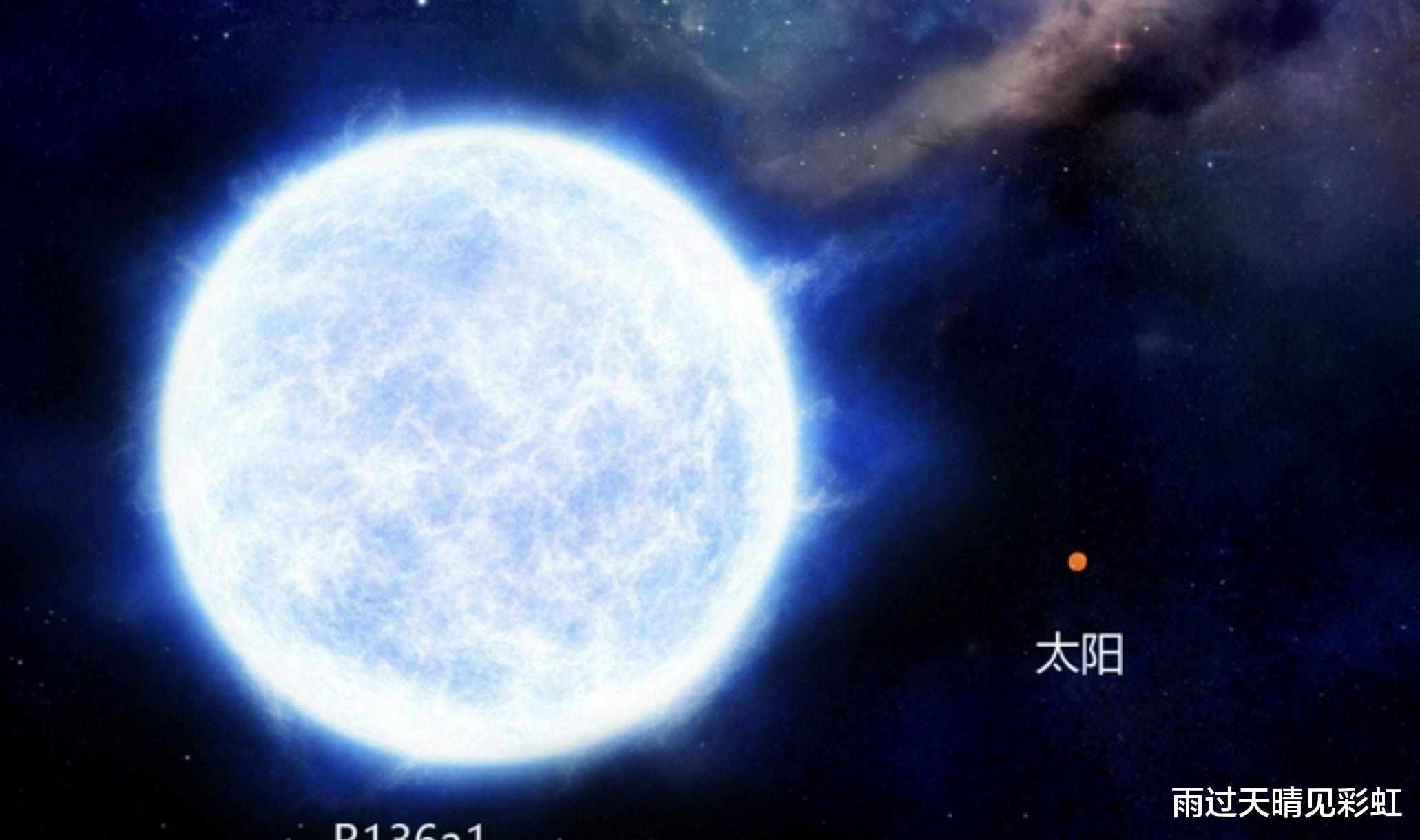 然后,咱们再来看看个头大的。R136a1可是宇宙中质量最大的恒星,它的质量是太阳的265倍!这要是放在太阳的位置,估计整个太阳系都要被它撑爆了吧!恒星质量的大小,跟原始星云的物质丰度和元素比例都有关系,物质多,质量就大。