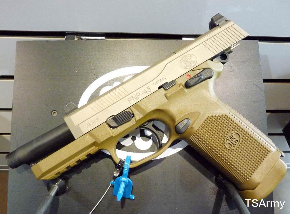 比利时的FNP系列手枪造型也是很漂亮,而且全系列也都具备模组化功能,套筒底部带有导轨,可用于安装枪灯或者红外线激光指示器,同时全系列的套筒底座都采用土黄色,看起来就像是特种部队的战术手枪,当然,这个系列中的9毫米版本也被特种部队少量采用。