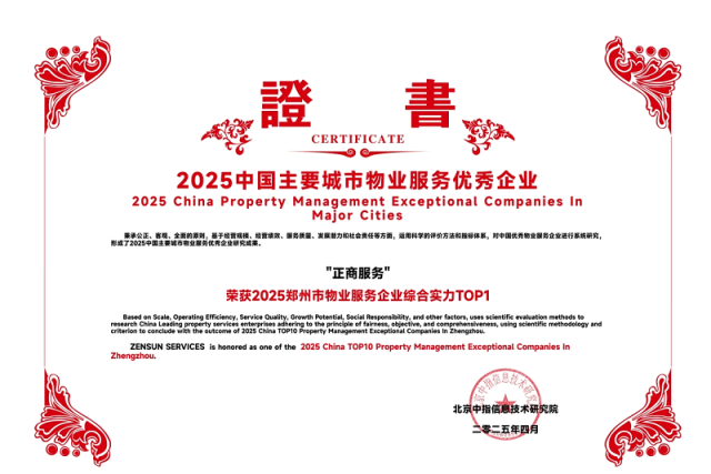 会上,正商服务凭借务实的服务品质,稳健的拓展步伐及卓越的管理能力荣获 「2025中国物业服务百强企业TOP26」、「2025年中国高端物业服务领先企业TOP9」、「2025郑州市物业服务企业综合实力TOP1」等荣誉,高质量发展之路获行业高度认可。