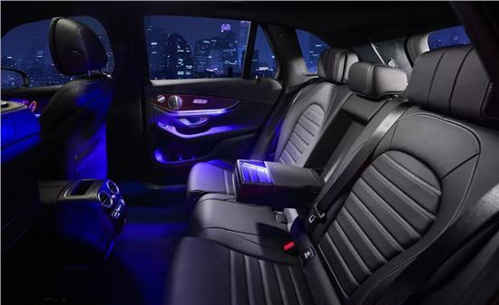 此外,长轴距GLC SUV的灯光系统也值得一提。几何多光束LED大灯,照明范围高达近650米,其84颗独立LED光源能够精准控制光束分布,既提升了夜间驾驶的安全性,又避免了对向车辆的炫目。这种细致的设计,体现了奔驰对细节的极致追求。