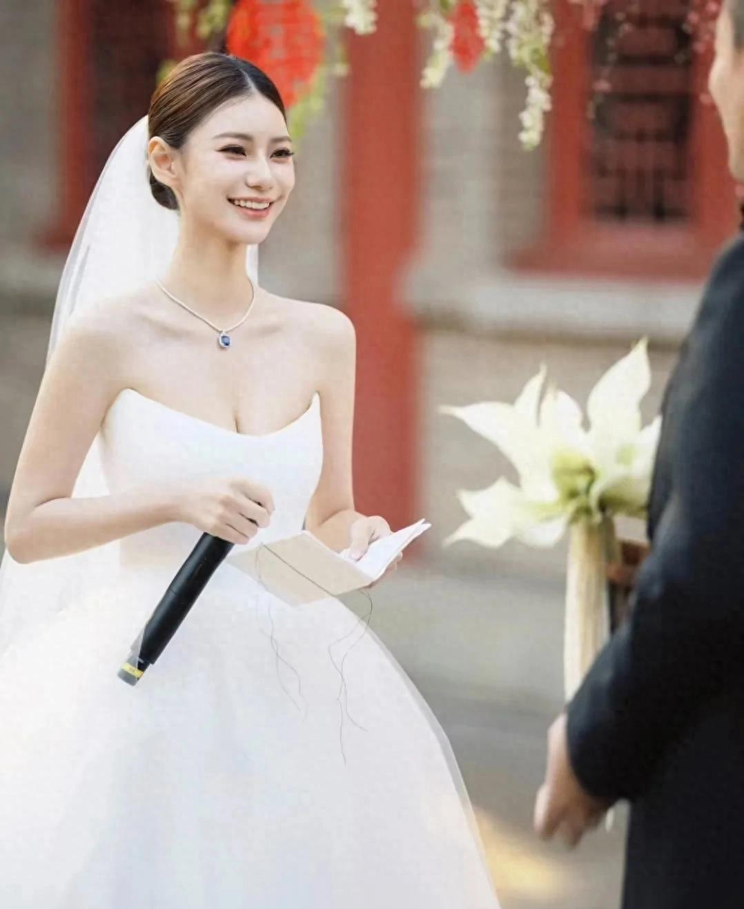 郡王府中,大红灯笼高高悬挂,不知情的人,还以为在拍《还珠格格》。汪小菲身着喜服,站在那里,简直就像是从过去穿越而来的贝勒爷。马筱梅的那身装扮,也蛮有趣的,比电视剧里的福晋还要逼真。