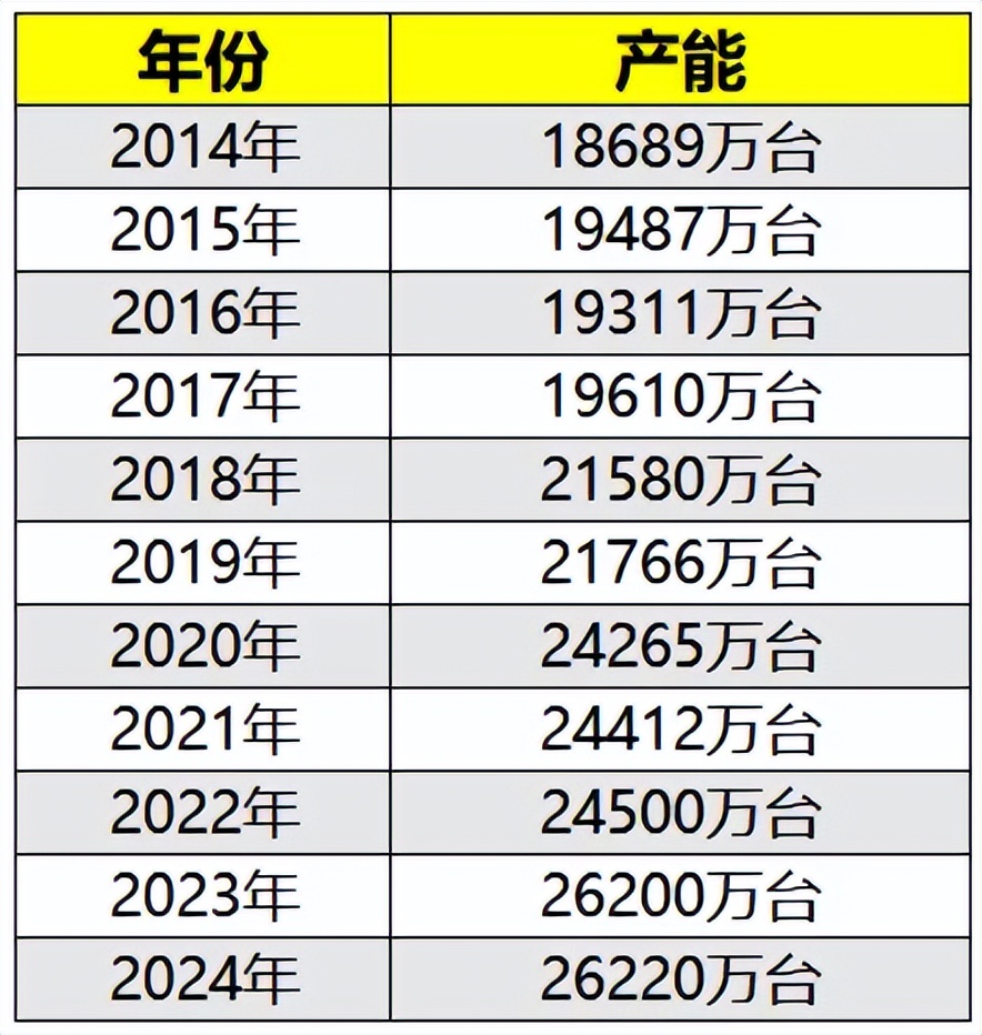 雷军呀,T先生还有个担心,即使小米空调达到了这个产能,你确定能卖得出去吗?要知道,中国现在空调的产能是严重过剩的。2024年,中国空调的产能是2.6亿多台。有个说法是,中国所有空调企业开足马力干一年,够全球市场消化三年。