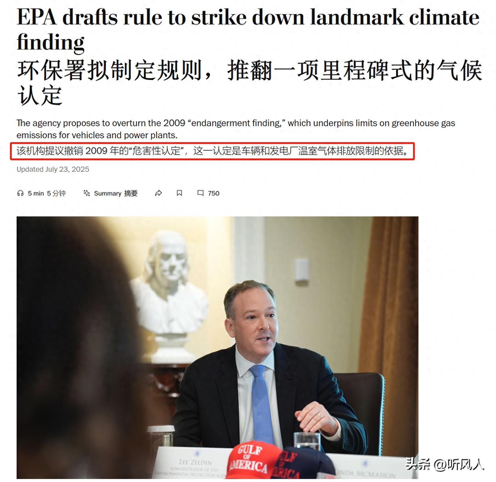 美国的环境保护署(EPA),打算提出一个草案,把之前灌输给大家的,“温室气体有害”这个观念给撤回……