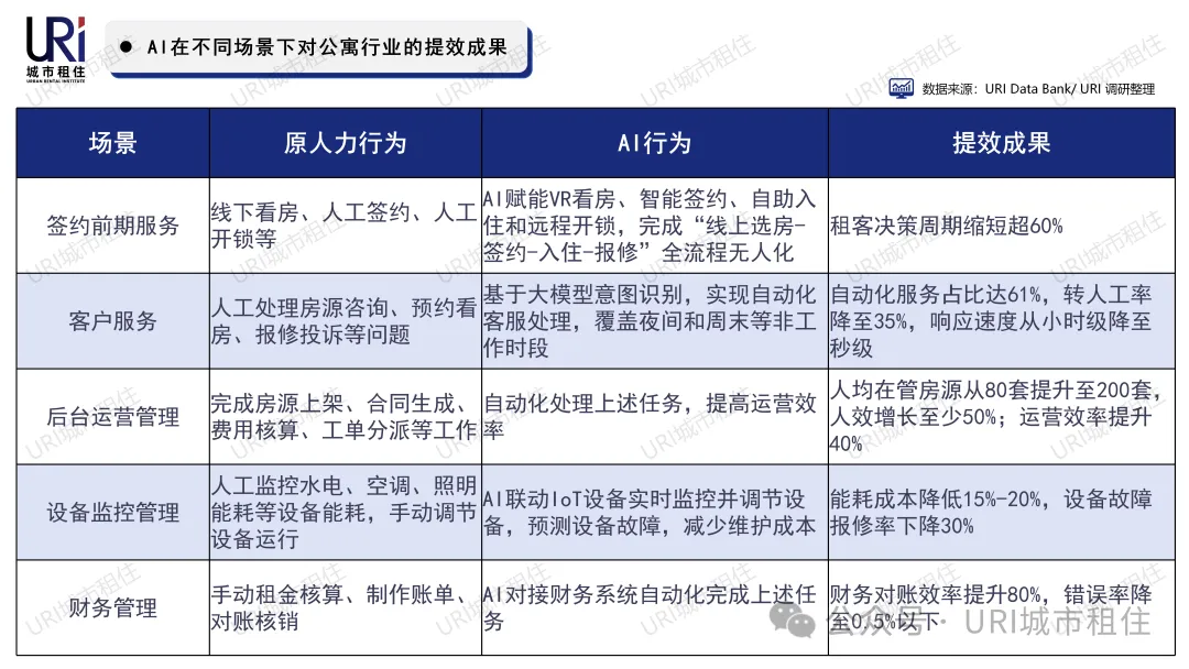 那么在公寓行业中,AI是如何彻底解放人力,实现运营全流程智能化的?URI城市租住总结了几大典型场景: