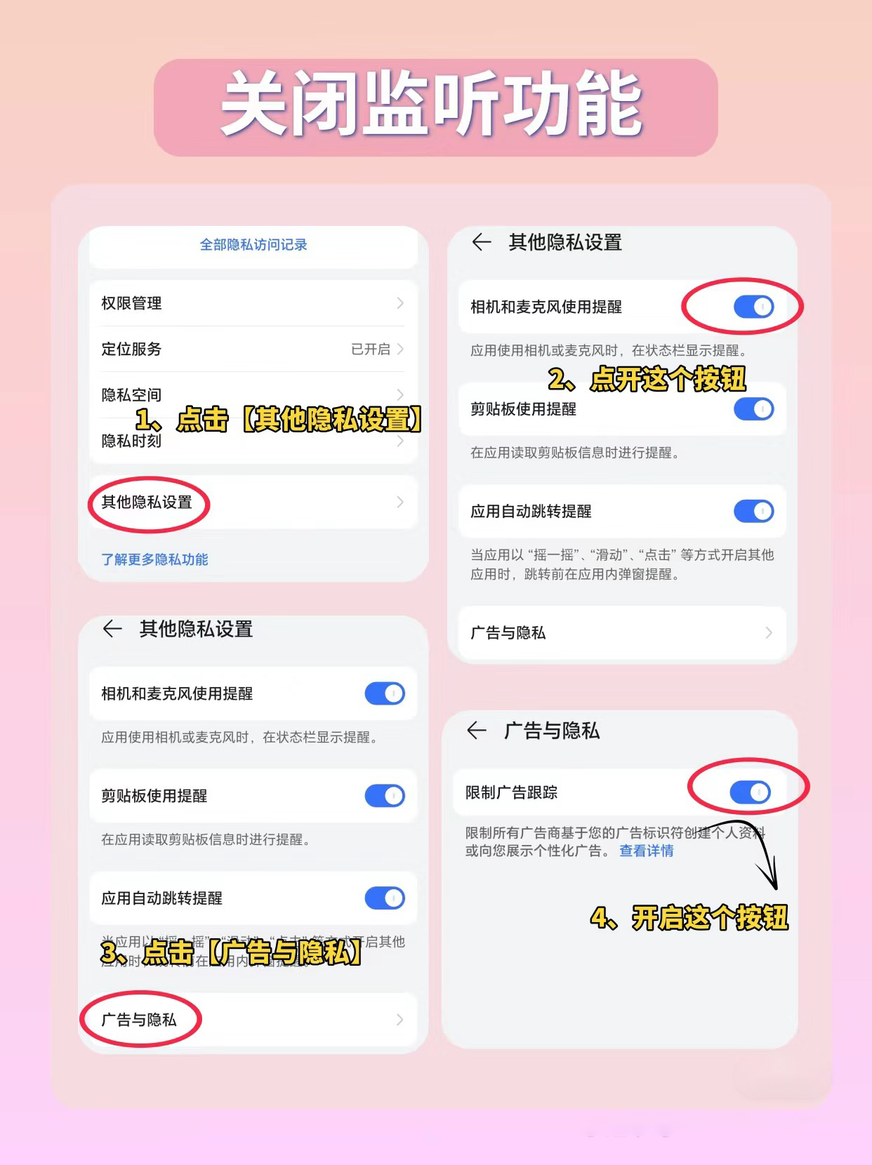 完成以上步骤就能大大降低荣耀手机被监听的风险,但其实生活中还有很多无意识的行为也在泄露个人隐私,平时还要注意以下方面。