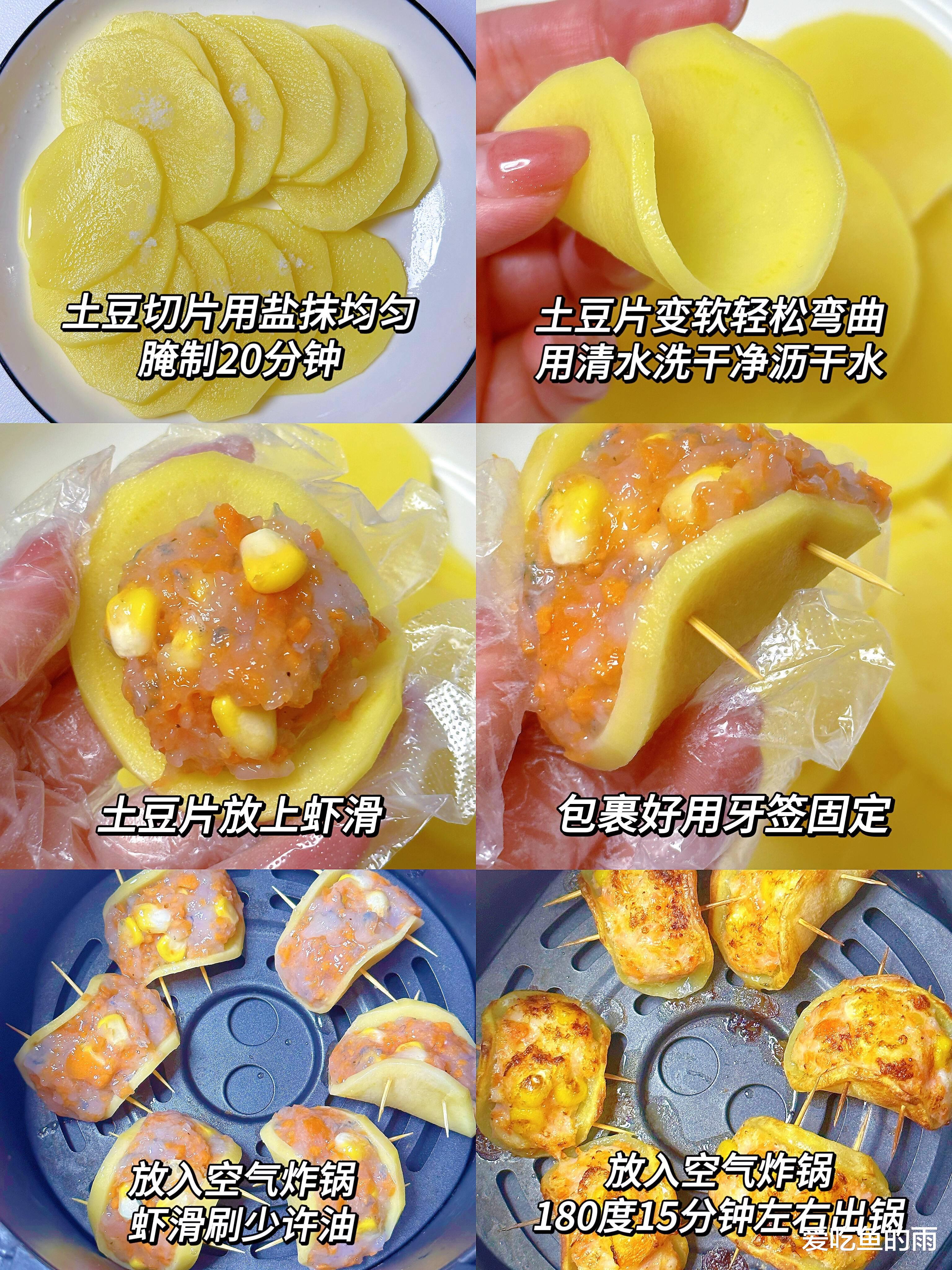 这道菜的诞生颇有现代厨房的智慧色彩。原本是火锅店里的虾滑,被爱吃薯片的孩子妈妈灵机一动:为什么不把两种孩子最爱的东西结合起来呢?第一版是将虾滑抹在薯片上油炸,后来为追求健康改用空气炸锅,又发现新鲜土豆切薄片比薯片更有天然甜味。这个无心插柳的创作在妈妈群流传开来,各家根据自己的空气炸锅脾性调整时间温度,有的加芝士,有的撒海苔,逐渐演变成如今这道风靡社交平台的懒人美食。