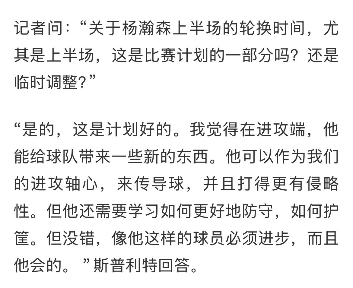 一是关于杨瀚森的登场,斯普利特明确表示,这是球队的战术计划安排。至于原因,斯普利特认为杨瀚森可以带来“新东西”,具体表现在传球,可以解决进攻问题!