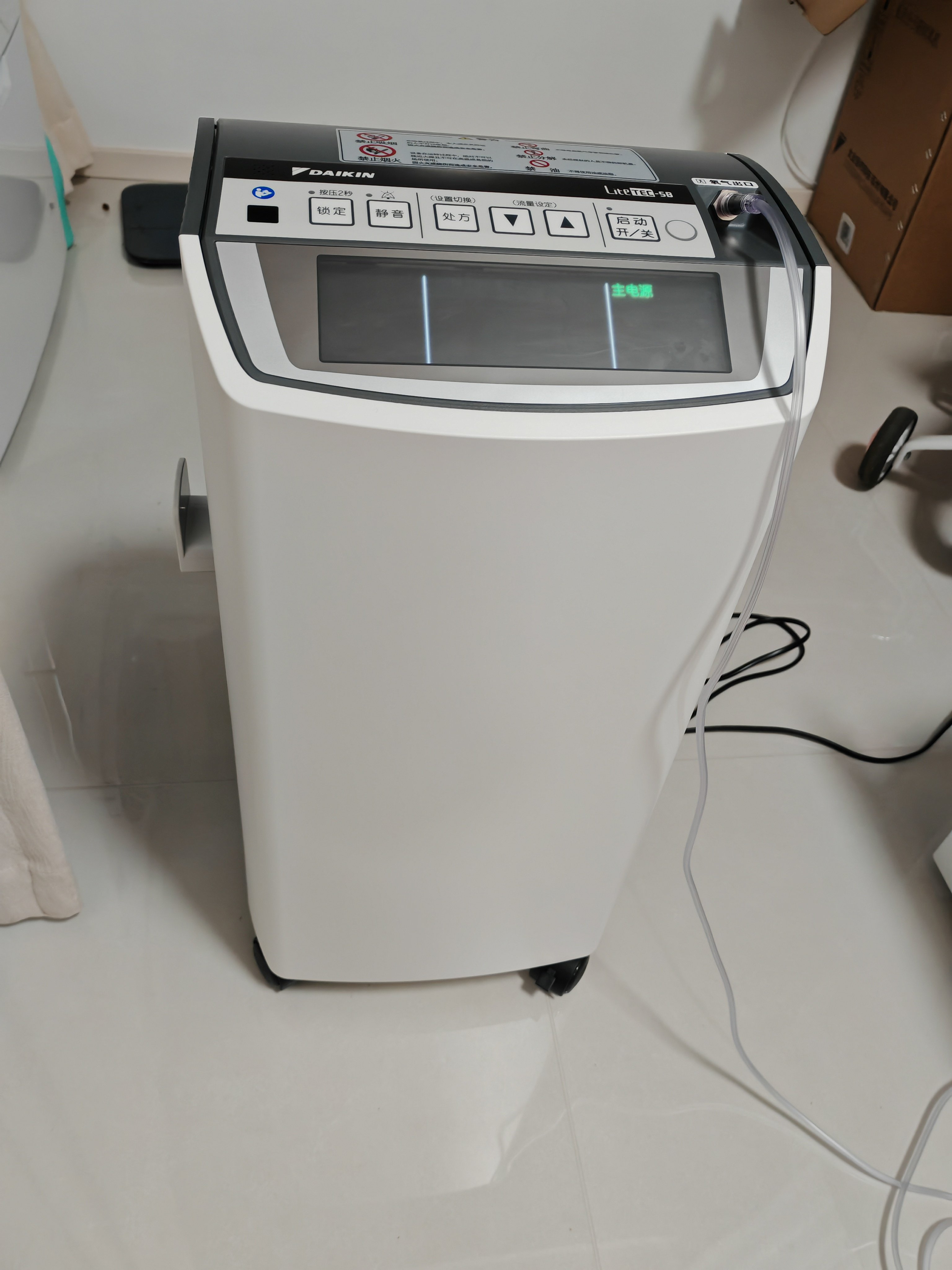 它的这个飞利浦制氧机型号体积比之前见过的小巧,放床头柜旁边不占地方,轮子顺滑推起来轻,搬去客厅也还行,配件里的吸氧管够长,戴的时候不会勒耳朵,中规中矩。技术上用了高效压缩机配合分子筛制氧,还有智能监控系统能显示当前流量。不过夏天开空调房间密闭的时候,用半小时左右,氧气浓度会有点波动,大概上下1%,不够稳定。