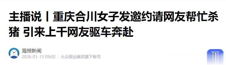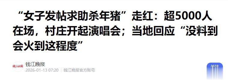 从合川村头到墨尔本街头,这场杀猪宴正在以惊人的速度向全球传播,女子一句“帮我按猪”引来万人观看,单日暴涨30万粉丝,官方文旅更是全员上阵。