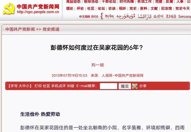 1,2013.7.19-人民网-彭德怀如何度过在吴家花园的6年?