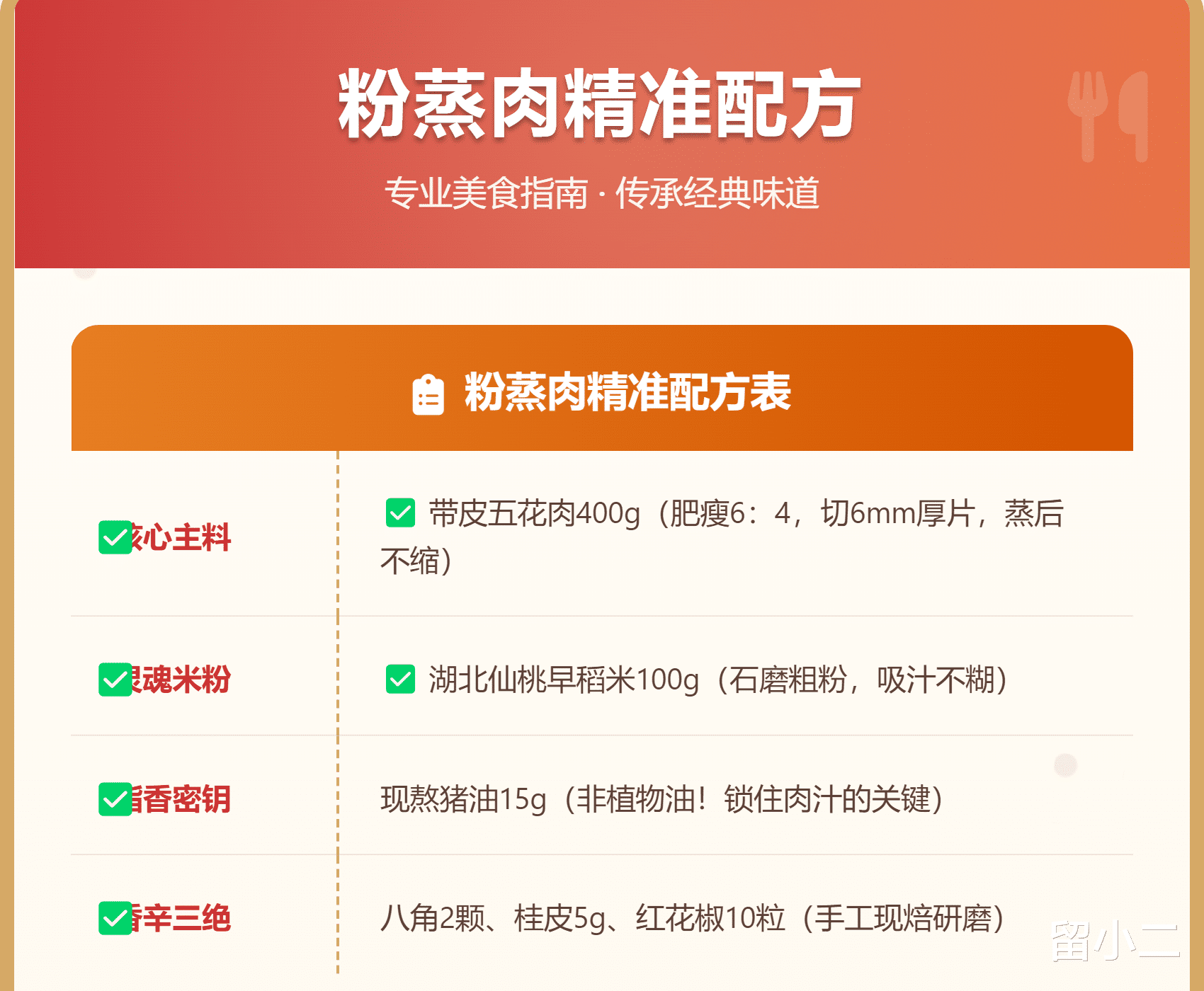蒸笼一开满院香,慈禧御膳房档案里的‘五层镶肉’就是它!” 今日揭秘粉蒸肉千年不柴的奥义——湖北沔阳石磨米粉+猪油封魂法!家常版总遇米粉结团、肉老如柴?跟我走,从选米到蒸制步步精解,国宴标准端上你家餐桌!