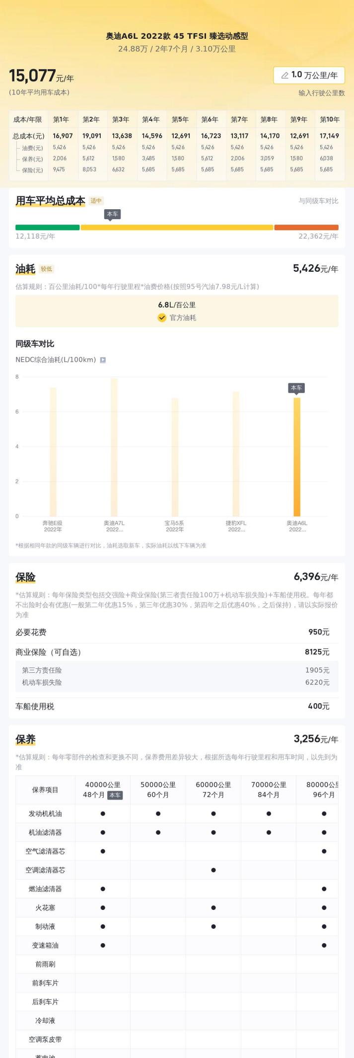回到这辆奥迪A6L,我们可以试着从更专业的角度来分析一下它的价值。例如,它的动力系统、底盘悬挂、电子配置等等,与同级别车型相比,有哪些优势和劣势?它的油耗表现、保养成本、维修难度等等,又如何?
