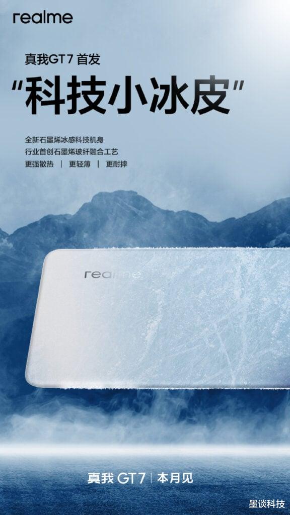 Realme 最近透露了一个更有意思的点:GT7 用了一种新背板材料,叫“石墨烯玻璃纤维融合”,据说热导率是传统玻璃的 600%,还是行业首创。大多数性能旗舰(尤其中国品牌)都靠大面积 VC 冷却板贴着 SoC 散热,但热量最终得散到空气里,前后玻璃导热都不行。以前也有人试过金属背板,但重量和信号问题没解决好。如果 Realme 这 600% 热导率的说法靠谱,GT7 的持续性能可能会很强,尤其打游戏或者跑重负载时不怕热崩。而且这材料据说更薄、更轻,还更抗摔,比 GT6 的塑料背板(8.4mm 厚,207g 重)在散热和手感上应该强不少,设计上算是个突破。