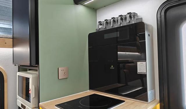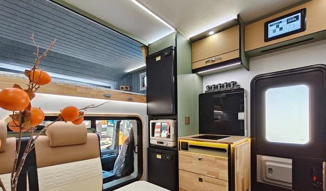 ,厨房的配置更是让人眼前一亮。对于长途旅行的人来说,能否在车上做好饭是一个重要评估标准。重汽豪沃统帅T3的厨房区域设计得极为周到,配备了两台76升的冰箱,微波炉,以及2200W的电磁炉等各种必备设施,充分满足家庭出行时的饮食需求。而中间的大面积操作台,设计师合理利用空间功能的同时,也让烹饪变得愉快而高效。在这样的厨房中,家庭成员不仅可以享受做饭的乐趣,伴随家人共享温暖时光,也让旅行的美好体验得以延续。