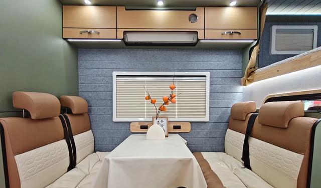 进入车内,首先映入眼帘的是简约而不失温馨的内饰。重汽豪沃统帅T3采用了E0级环保板材,加上原木纹路的家具搭配,不仅让整体空间显得更加自然舒适,也从侧面体现了对家庭成员健康的重视。在空间设计上,房车整体布局做到科学合理,以满足4口之家日常生活的各种需求。这种布局设计,并不只是单纯的功能性考虑,更是设计师对家庭互动空间的思考。比如,前后双人床的设置可以确保夫妻间的私密性,而中间的会客区域则给家庭带来了更加亲密的交流场所。