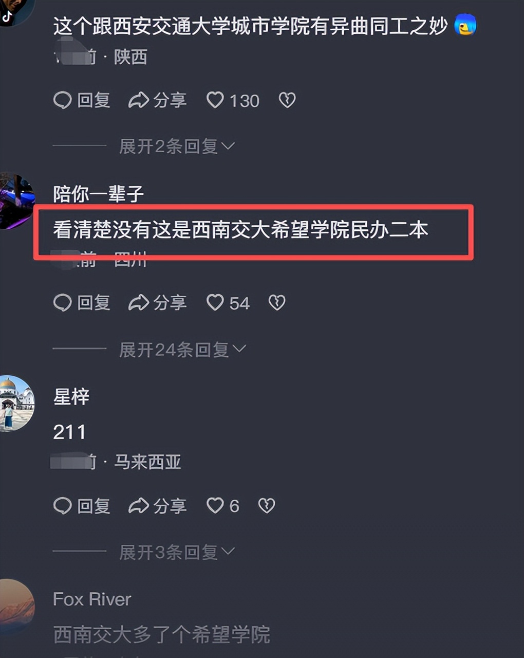 说白了就是民办院校,挂了一个人家的名号而已,也就是一种招生的手段罢了。而这所学校的全称其实是西南交大希望学院,是妥妥的民办二本。