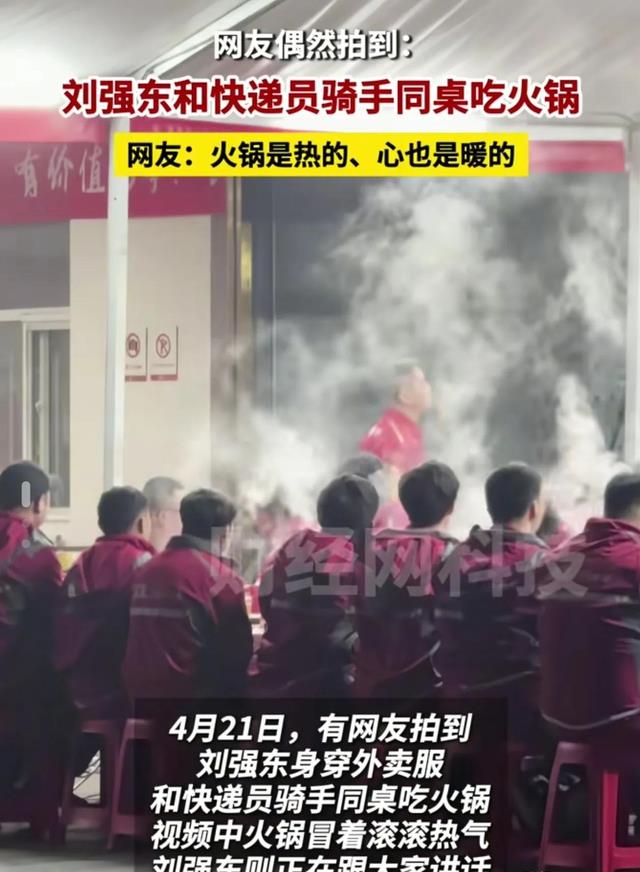 可谁能想到,这竟是真的,因为在当天,还有人偶遇刘强东骑着车送外卖,甚至到了晚上,还拍到刘强东和外卖骑手一起吃火锅。