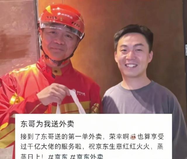 这位网友点的外卖,配送人竟是刘强东,太有意思了。不过,很多人质疑这是托,合照也是摆拍,毕竟以他的身价,完全可以不用干这个活。