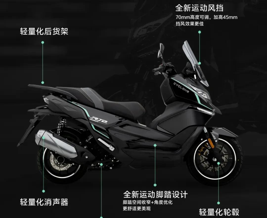 接下来,我们再看看赛科龙RT2 2025款。这款车型在价格略微下调的基础上,减重8公斤,并提升了发动机功率。虽然减重幅度并非惊人,但对于操控性来说,每一公斤的减重都意味着提升。试想一下,在拥挤的城市道路中穿梭,更轻的车身能让你更加轻松地应对各种路况。而发动机功率的提升,则意味着更强的动力和更快的加速,这对于追求速度与激情的骑手来说,无疑是吸引人的卖点。