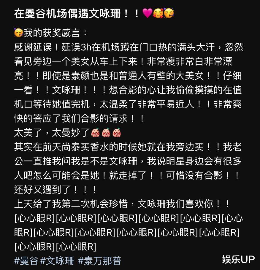 对于粉丝而言,能在旅途中偶遇偶像并留下温暖的互动记忆,确实是一段难得的经历。而文咏珊也用实际行动诠释了什么是“低调做人,高调演戏”。期待她在照顾好家庭的同时,继续为观众带来更多精彩的作品。