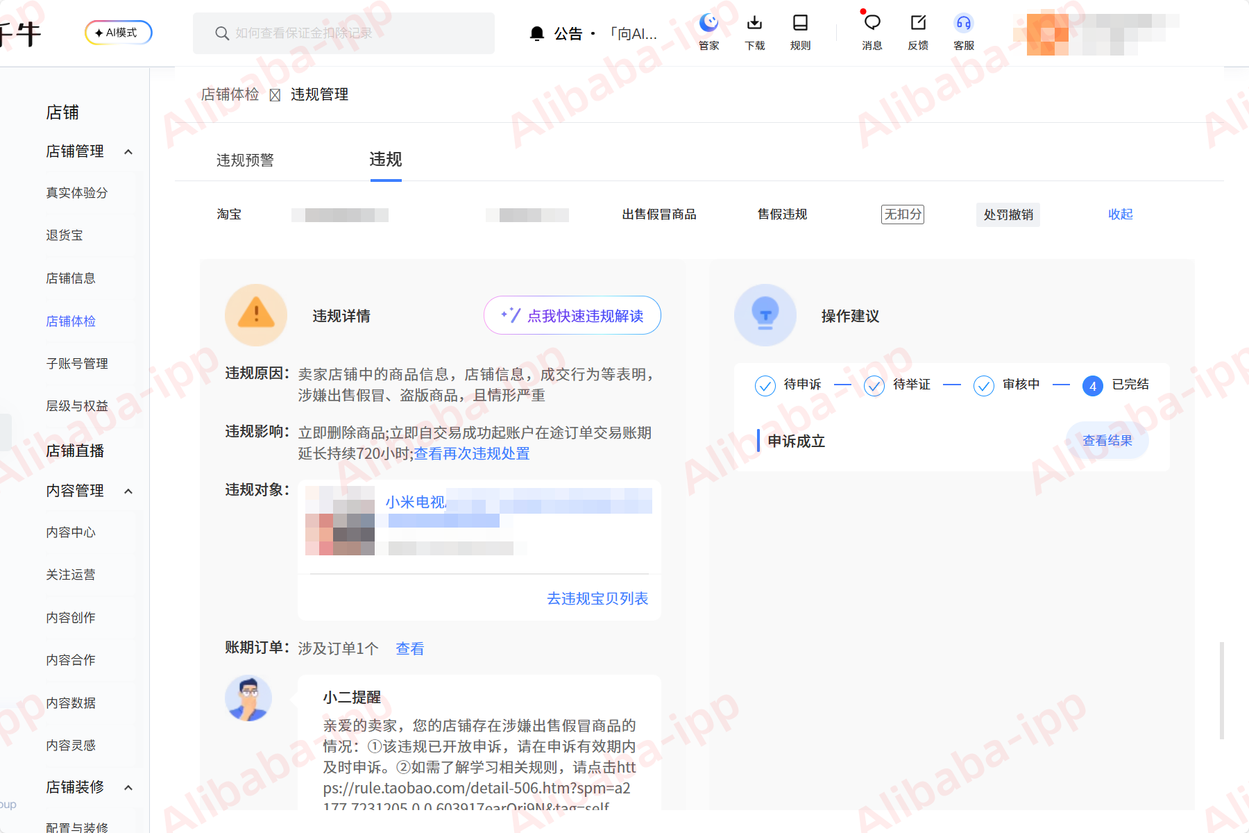 作为一名专营小米品牌商品的淘宝店主,老李一直本分经营,商品均通过官方渠道采购。然而,一个寻常的午后,店铺后台的一则违规通知让他心头一紧。其主营的“xiaomi小米液晶电视机”链接,被平台判定为“信息层面售假”。违规原因明确指出:基于商品信息、店铺信息及成交行为等多维度数据分析,涉嫌发布假冒商品。这意味着,不仅这个辛苦打造的热销链接面临被直接删除的风险,整个店铺都可能因这次处罚影响而遭受降权,进而影响后续所有活动的报名资格,可谓一着不慎,满盘皆输。困境溯源:“限购”策略下的采购难题