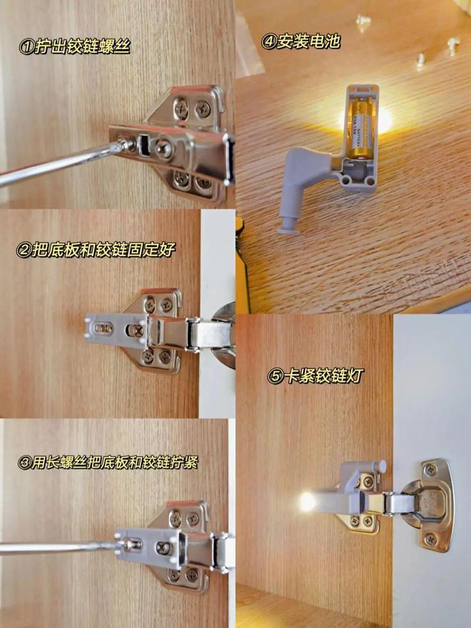 另外,像空间比较小的鞋柜,可以花2块钱买几个链接灯装上去,这个只有电池款,但也能用好久,安装方法如下图。