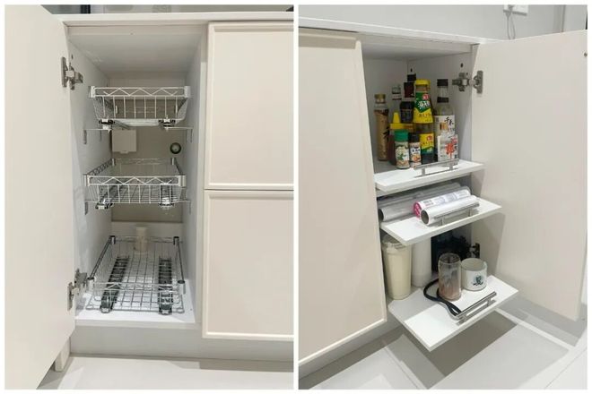 橱柜隔层算是最“鸡肋”的设计了,不仅严重浪费了收纳力,每次找东西时还得蹲下来翻半天,那叫一个麻烦。