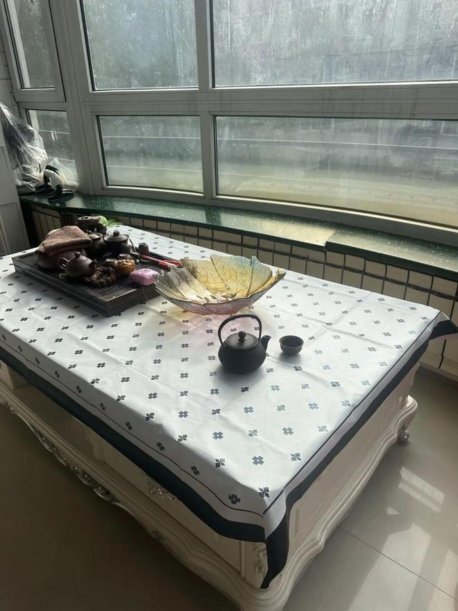 至于原来的茶几柜体,我还是没舍得扔,给它配了一块桌布,暂时放在一边,等以后想到好办法再处理。