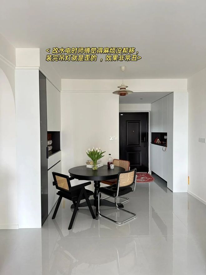 Tips:如果餐厅灯实在不好移,可以换一盏摇臂灯。
