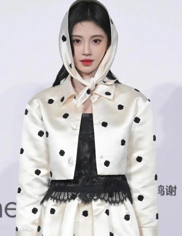 鞠婧祎的波点在大批的深色系里真的很显眼。