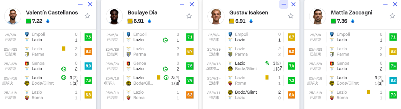 拉齐奥:边后卫塔瓦雷斯和中场拉扎里近期受伤,拉齐奥相对缺少反击出球和助攻点,对反击影响还是存在的。