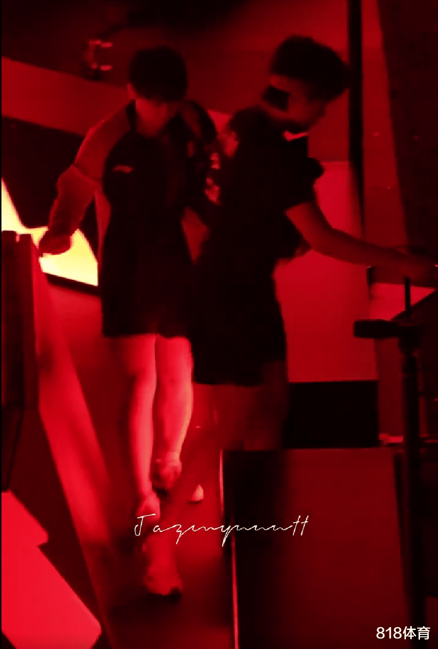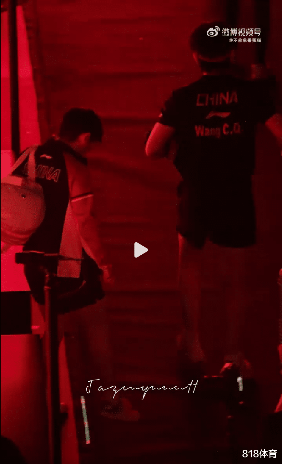 由于现场的光影设置,在他们下场的区域比较黑,王楚钦在前面探路。