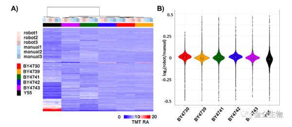 对定量数据进行聚类分析,相同的yeast strain聚在一起,不同样本制备方式不会造成定量结果的差异。
