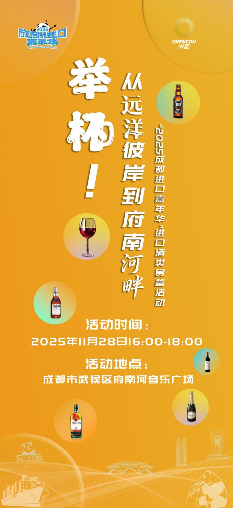 本周五晚上,就在府南河音乐广场,世界各地的美酒,等你来看、来尝、来买!优惠多多,微醺在即,期待与哪一杯惊喜邂逅?「2025成都进口嘉年华」进口酒类赏鉴活动来啦!