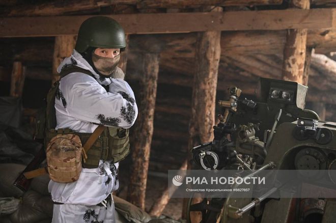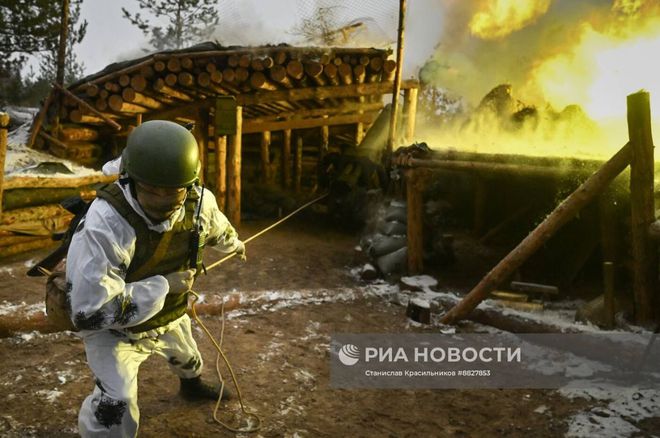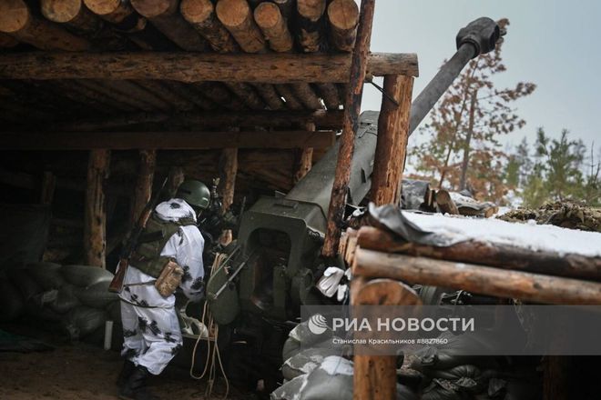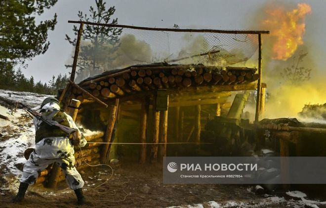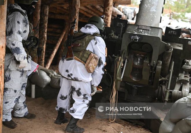 乌克兰战场上,克拉斯诺利曼斯基方向俄罗斯“西方”集团军第25集团军第67摩托化步兵师第31摩托化步兵团“巴什科尔托斯坦”的122毫米D-30榴弹炮正在发射中。