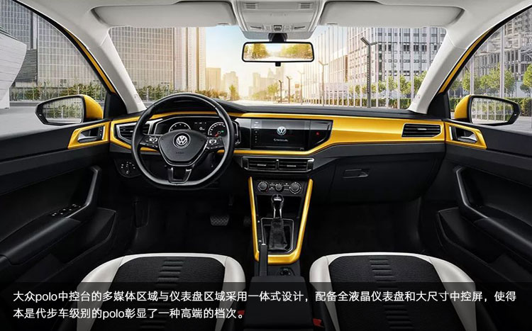 大众polo中控台的多媒体区域与仪表盘区域采用一体式设计,配备全液晶仪表盘和大尺寸中控屏,使得本是代步车级别的polo彰显了一种高端的档次。