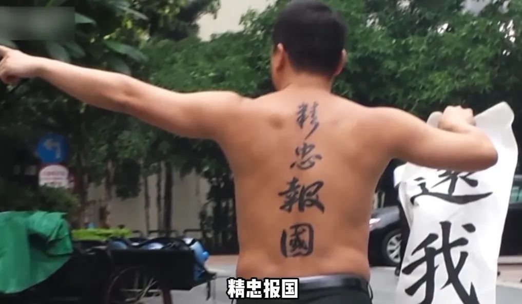 而妻子带着女儿离开了他,原来的单位也不敢继续留用,身边的朋友也渐行渐远,后来他在很长的一段时间里,刘强几乎得了抑郁症,但好在他终于找到了情绪的出口,那就是去日本的领事馆门前进行文艺表演。刘强有时穿着军装,有时赤裸上身,故意露出背上的四个大字,精忠报国。