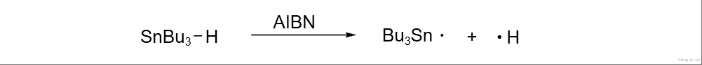 反应机理:首先由 AIBN 分解和三丁基锡反应得到三丁基锡自由基引发反应。